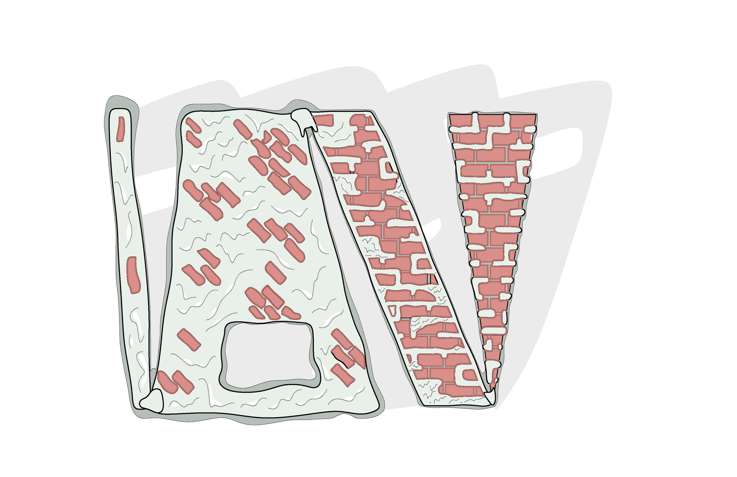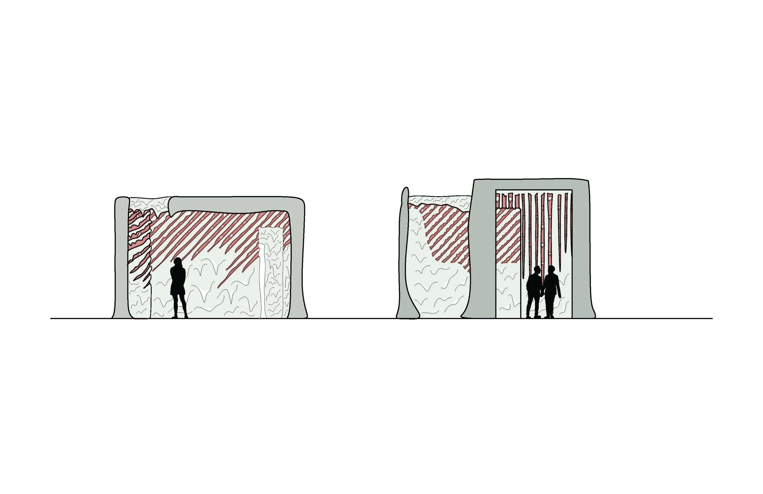 Weeping Wonder takes this understanding of weeping mortar and expands the technique to different brick assembly orientations, atypical from the horizontal orientation that is typically seen within weeping mortar. This project speculates that depending on the orientation of the brick the mortar will begin to consume the brick, eventually leaving it unrecognizable from its original pattern. The organization of brick orientation within the pavilion attempts to organize the brick orientations in a way that, as one moves from beginning to end, one can begin to observe and spatially feel the effect of mortar consuming the brick leaving the last form and brick orientation completely unrecognizable.